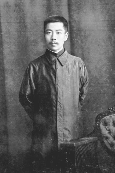 1903年攝于日本。這張照片被稱為“斷發照”,是現存最早的魯迅單人照。魯迅在弘文學院剪辮后,拍照留念,并贈與同學兼同鄉友人許壽裳一張。許壽裳稱魯迅贈與照片同時,還贈七言詩一首與他,“靈臺無計逃神矢,風雨如磐暗故園。 寄意寒星荃不察,我以我血薦軒轅。”魯迅去世后,許壽裳在回憶錄中將這首詩定名為《自題小像》。魯迅一生很看重這張照片,多次將其洗印贈友。