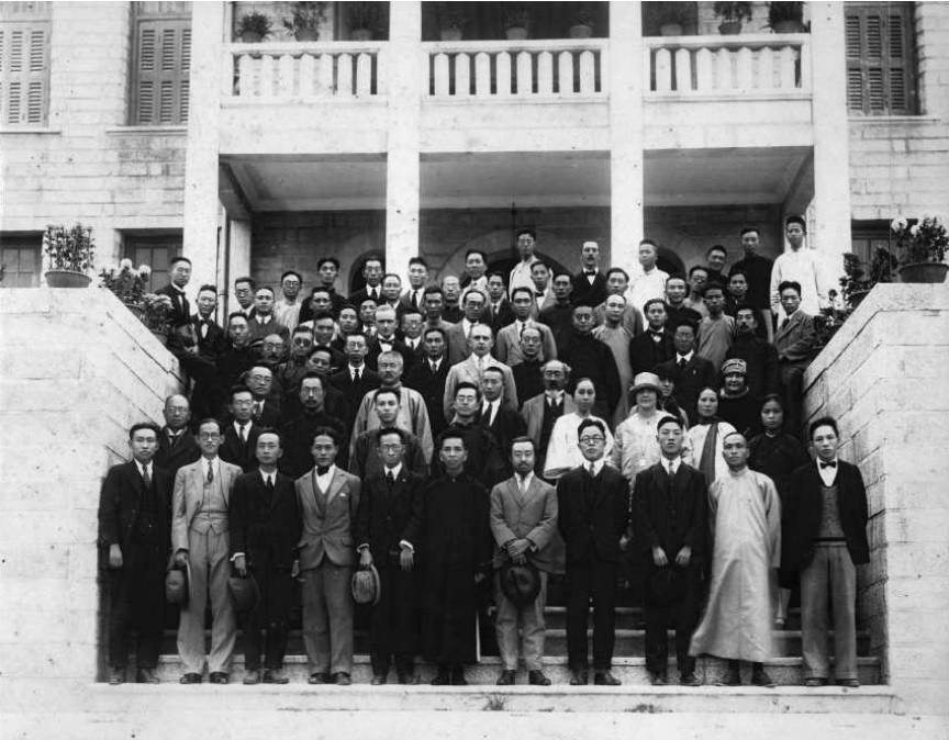 1927年1月4日攝于廈門。在全校師生送別魯迅合影后,文科學生特邀魯迅在群賢樓后面另照一相,“泱泱”“鼓浪” 兩個文學社學生也參與了此次合影。前排左七為魯迅。
