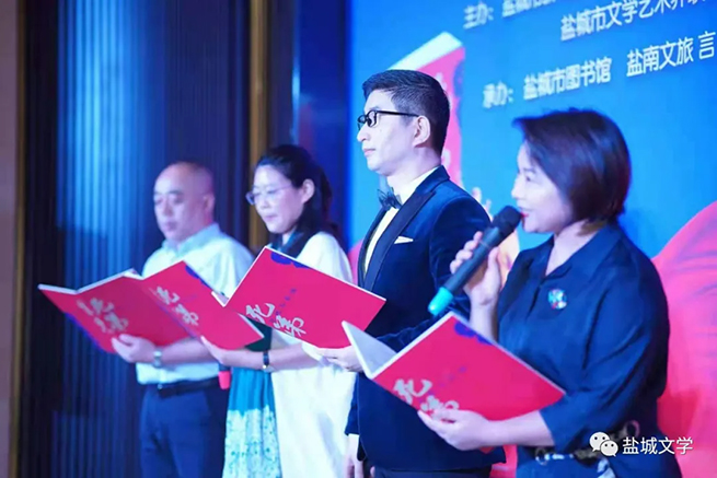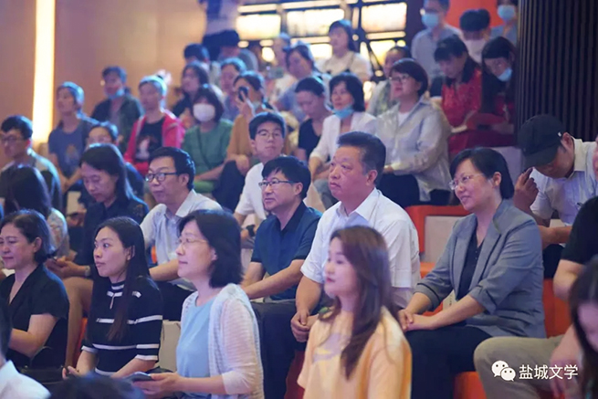 鹽城市新聞出版局副局長朱友明,市文聯黨組成員、副主席、市作協主席張曙光,市全民閱讀促進會會長季德榮、副會長劉進,市圖書館館長黃興港,市作家協會副主席兼秘書長徐向林,鹽南高新區宣傳信息中心主任盧玉恒,建湖縣委宣傳部副部長葛菁,言+買書匯總經理王明瑜等嘉賓及近百名市圖書館黨員代表、社會各界書友參加了分享會。分享會由知名評論家孫曙、朗誦家江華主持。