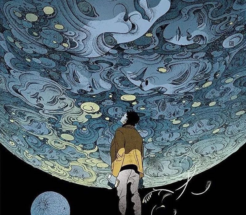 主人公來到索拉里斯星的探測站,見到了自己已逝妻子的幻象,似乎反倒是神秘的索拉里斯星海洋在探測來到此處的人類的內(nèi)心世界(圖像藝術(shù)家:Victo Ngai)