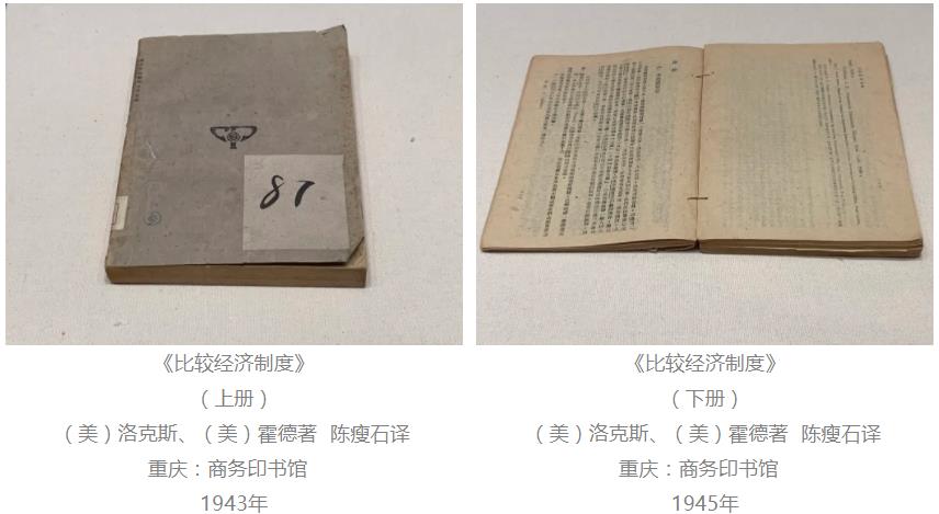 美國人洛克斯和霍德著有《比較經(jīng)濟(jì)制度》,是重要的社會經(jīng)濟(jì)學(xué)著作,由陳瘦石翻譯。《比較經(jīng)濟(jì)制度》上、下卷在1943 年9 月、1945 年4 月出版,是比較經(jīng)濟(jì)學(xué)專科的基礎(chǔ)理論教材,作為“中山文庫”叢書之一,由設(shè)在重慶白象街的“中山文化教育館”編輯并由商務(wù)印書館出版發(fā)行。