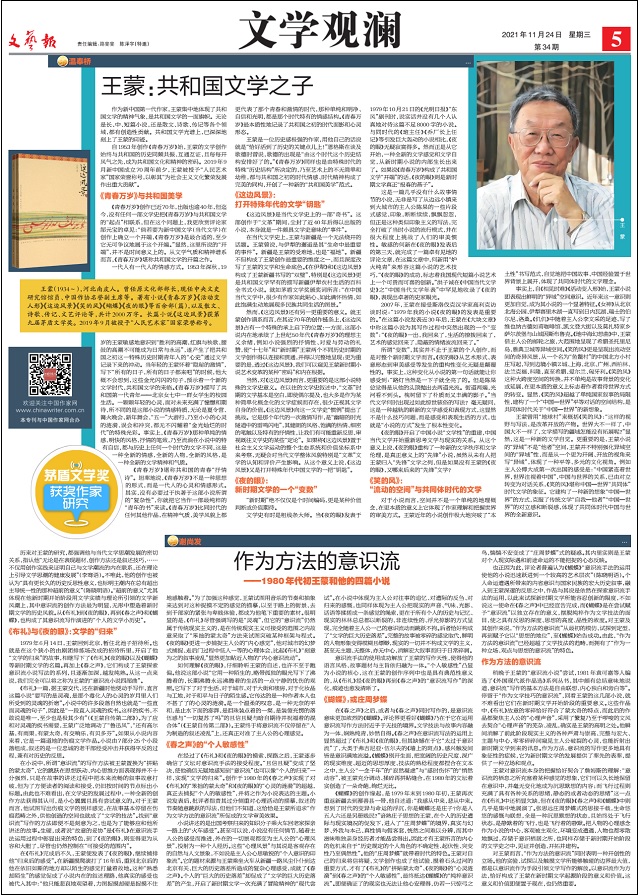 (本文發(fā)于中國作家網(wǎng)在《文藝報》所開設(shè)的“文學(xué)觀瀾”專刊,“茅盾文學(xué)獎獲獎作家研究”2021年11月24日第5版。)