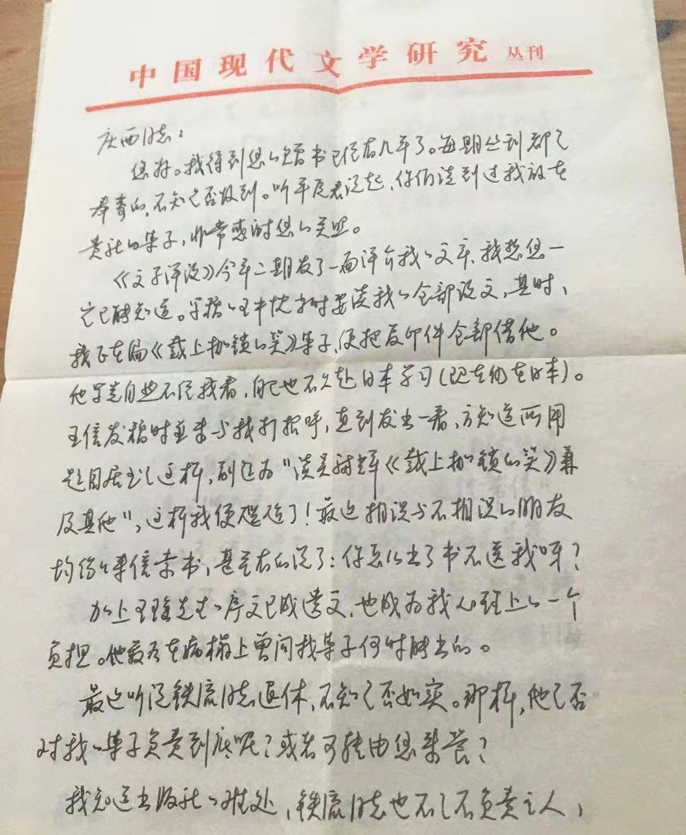 我去年十月在《上海文學》發一論文,不料有些效果。汪曾祺與張兆和先生(沈從文夫人)輾轉帶信兒過來,索要此文,使我受寵若驚。繼而,上海文學蔡、楊兩兄突來信說,拙文被評為上海文學獎。如果可能,我五月份在與季紅真陪臺灣某人去湘西前后,會去上海一次,這便使我想起那次與您在建國西路同住時的愉快。兄能在五月初簡 復我一信以免我懸念嗎?