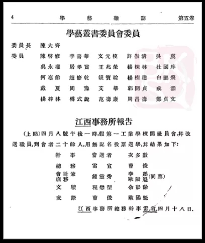 《學(xué)藝》所載學(xué)藝叢書委員會委員名單
