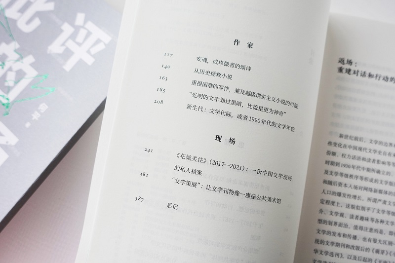 全書分為“思潮”、“作家”與“現(xiàn)場”三輯。據(jù)何平介紹,“思潮”,是對改革開放時代,尤其是新世紀(jì)二十年中國文學(xué)整體的勘探和思考,涉及改革開放時代中國文學(xué)整體觀、世界性和地方性、文學(xué)和代際、文學(xué)和媒介、青年寫作和公共生活、多民族文學(xué)和文學(xué)共同體等話題。
