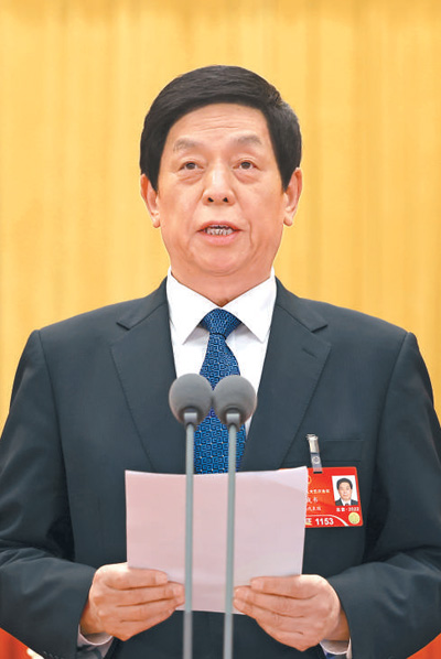 3月5日,第十三屆全國人民代表大會第五次會議在北京人民大會堂開幕。大會主席團常務主席、執行主席栗戰書主持大會。 新華社記者 黃敬文攝