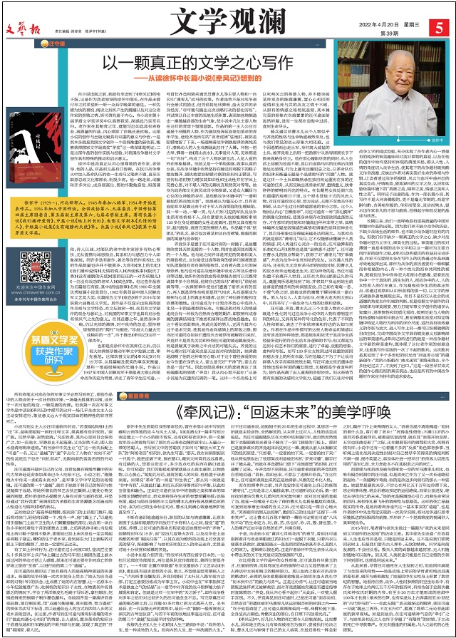 以一顆真正的文學之心寫作 ——從讀徐懷中長篇小說《牽風記》想到的