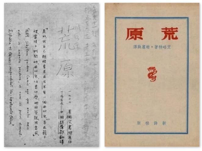 趙蘿蕤所翻譯的《荒原》手稿及初版封面