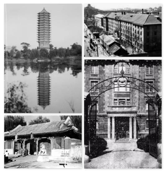 左側(cè)兩幅:舊時的燕京大學;右側(cè)兩幅:北京大學沙灘紅樓舊址