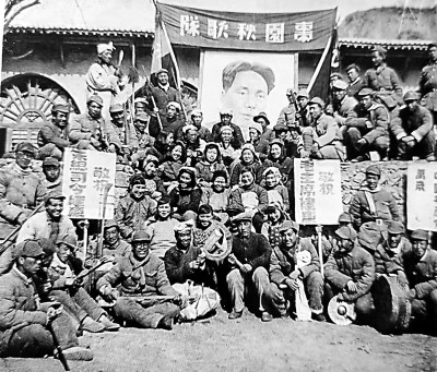一九四四年棗園秧歌隊(棗園文工團(tuán))全體合影。圖片為資料照片