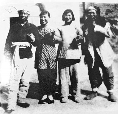 1943年延安棗園文工團(tuán)演出秧歌劇《動員起來》演員化裝照。圖片為資料照片