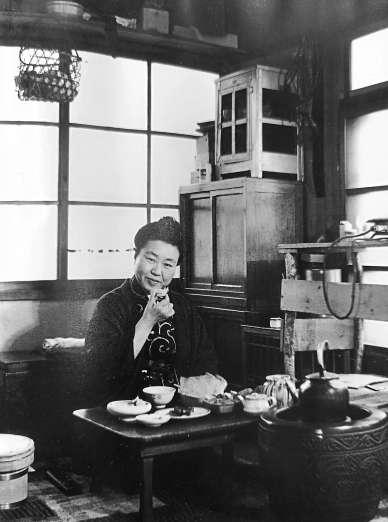 夏天,全家人擠在三席大的屋子里,熱熱鬧鬧、亂作一團地吃晚飯,父親用毛巾不停地擦拭著臉上的汗,自言自語似地嘟嘟囔囔發著牢騷:“‘香粳動食指,婪酣飽時大汗流,須知俗鄙事。’《柳多留》中有這樣寫道,可瞧這幾個孩子吵吵鬧鬧的,再風雅的父親,也止不住汗流滿面哪。”