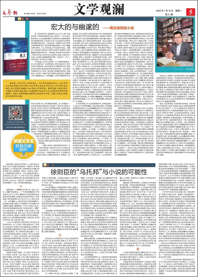 (本文發于中國作家網在《文藝報》所開設的“文學觀瀾”專刊,“茅盾文學獎獲獎作家研究”2022年7月18日第5版。)