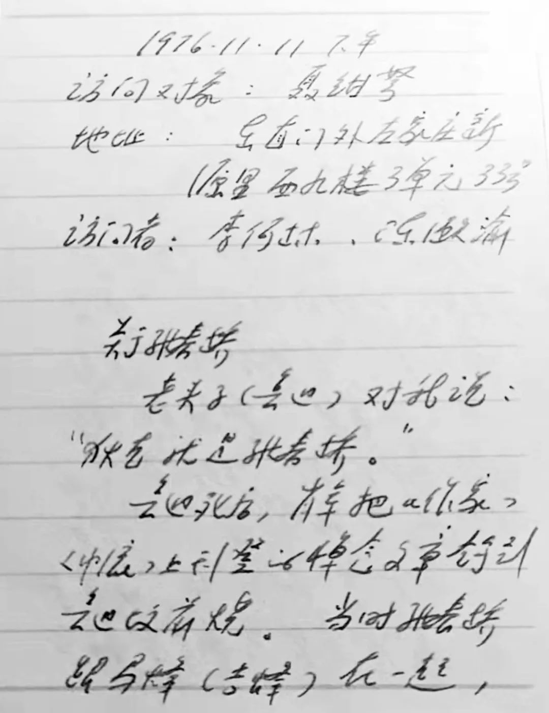 1976年11月,作者訪問聶紺弩后寫的記錄