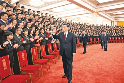上午11時,習(xí)近平等來到人民大會堂北大廳,全場響起熱烈掌聲。習(xí)近平等走到代表們中間,同大家親切交流并合影留念。