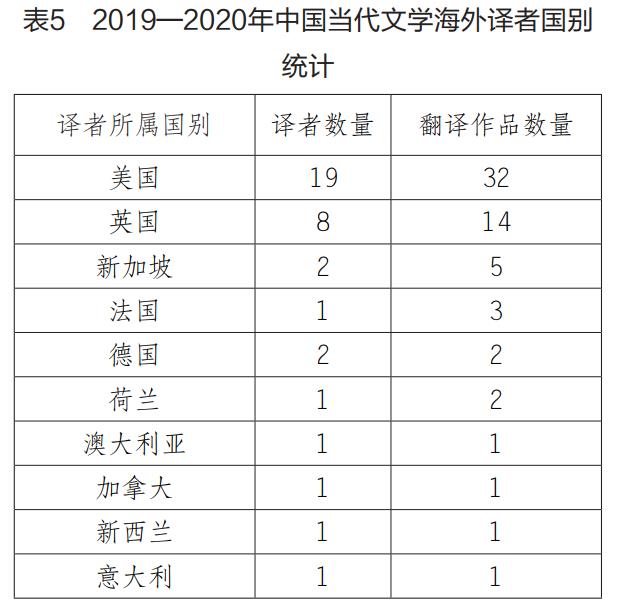 文本的對外翻譯依舊是中國當代文學海外傳播的核心與關鍵。通過本次研究發現,中國當代文學作品的譯介模式,已經從零散、個體的譯介向中外聯合的機制化、組織化譯介模式轉變。這也是一個非常重要的變化。中國當代文學作品的對外翻譯與介紹,一直是由少數漢學家、中國當代文學研究專家的個人學術興趣所主導,因而中國當代文學的對外譯介長期處于零散、偶發、不系統的狀態。2019—2020年度的數據顯示,這種譯介狀態正在發生轉變,由中國大陸出版機構、中介服務機構所進行的組織化、機制化翻譯模式已經逐漸形成。