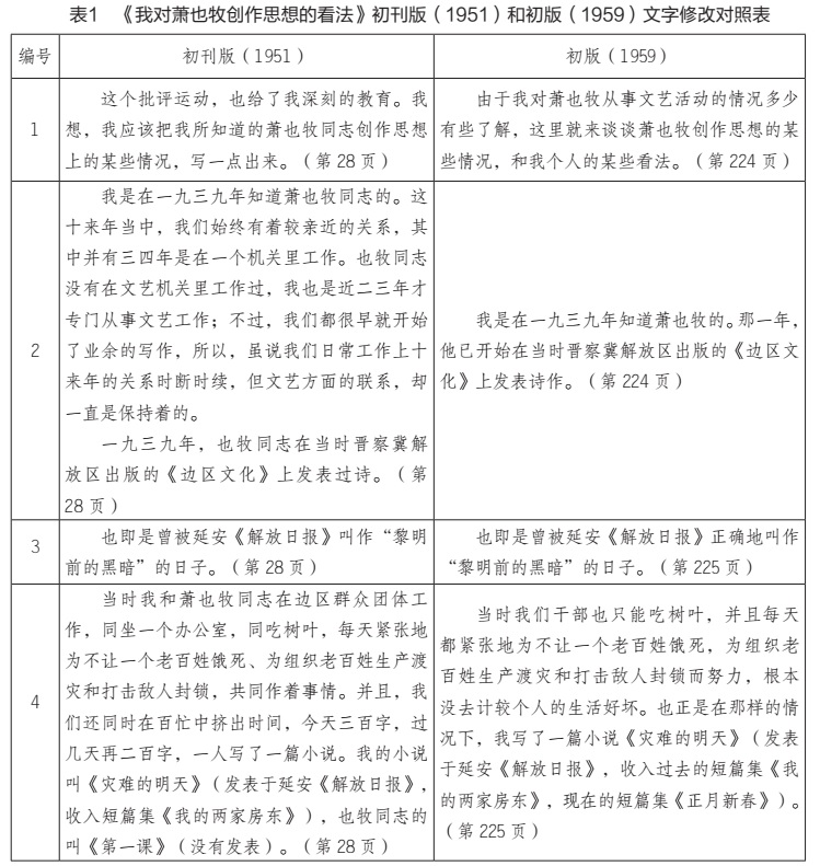 三、1979年后《我對蕭也牧創作思想的看法》的“處置方式”