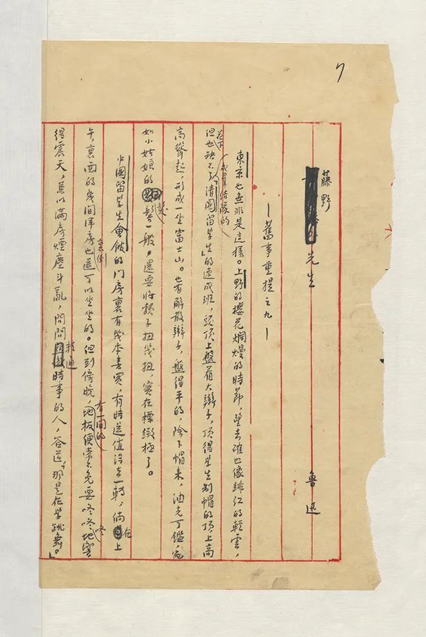 二是在日本時期的文稿。1902年魯迅留學日本途中寫了《扶桑記行》一卷,寄給周作人。據周作人說,實際上是用日記體記載赴日途中見聞,共12天,很詳細,估計也有幾萬字。稿佚。