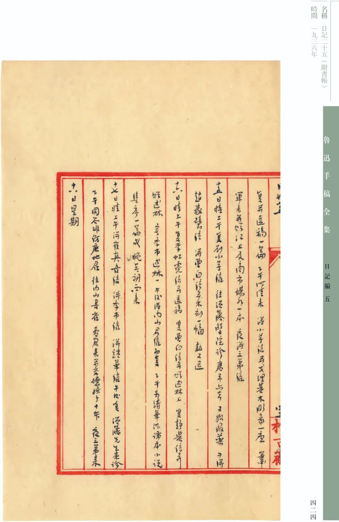 4.1978年至1986年文物出版社陸續出版的《魯迅手稿全集》共6函60冊,總計約300萬字(含創作、書信、日記,內容基本上已收入《魯迅全集》,也有極個別因不成文未收)。