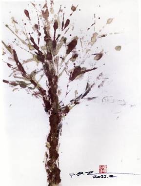 已86歲的魯光,畫(huà)思敏捷,即興隨意,作品卻寓意深刻。85歲的小說(shuō)《畫(huà)魂》的作者石楠,77歲習(xí)畫(huà),畫(huà)作色彩迷人。肖復(fù)興著作等身,畢業(yè)于戲劇學(xué)院,作品清一色戲畫(huà),風(fēng)格獨(dú)具。趙麗宏的畫(huà),與他的詩(shī)一樣,充盈著濃濃的文人氣。連輯畫(huà)閱歷,畫(huà)哲思,畫(huà)作厚重老辣。馮秋子的畫(huà),像她優(yōu)美的散文,潑彩潑墨,抽象浪漫。