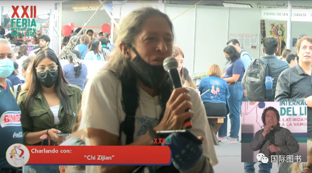 由中國作家協會主辦、中國圖書進出口(集團)有限公司承辦的2022年墨西哥“中國文學讀者俱樂部”于當地時間10月15日18:00(北京時間10月16日7:00)在墨西哥城國際書展主會場成功舉辦遲子建作品分享會?;顒訃@中國著名作家遲子建兩部譯為西班牙文的作品《額爾古納河右岸》和《燉馬靴》展開?;顒佑赡鞲绯俏幕种卮蠡顒犹幪庨L里卡多主持。智利大學講座教授孫新堂,《燉馬靴》西文版譯者、墨西哥知名漢學家莉亞娜,墨西哥二十一世紀出版社編輯埃萊娜等多位中外嘉賓出席活動并發言,其中孫新堂教授為活動的策劃和籌備提供了支持和協助。