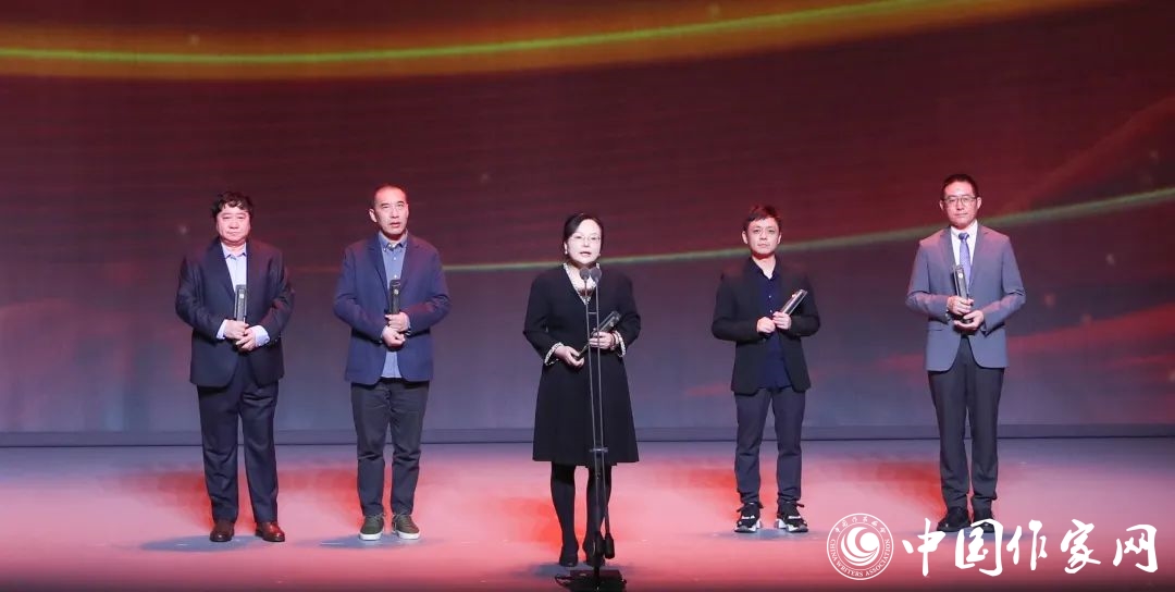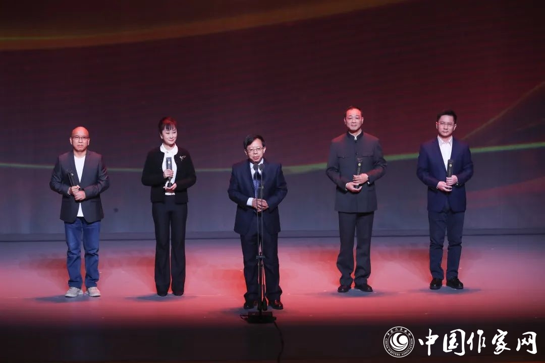 第八屆魯迅文學獎·報告文學獎得主龔盛輝、歐陽黔森、蔣巍、丁曉平、鐘法權(從左到右,下同)