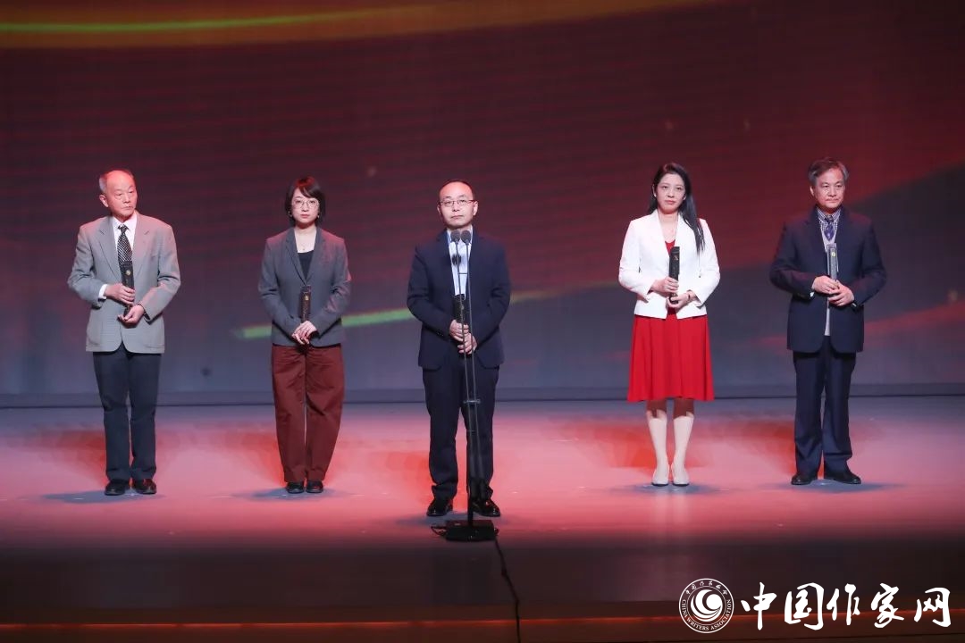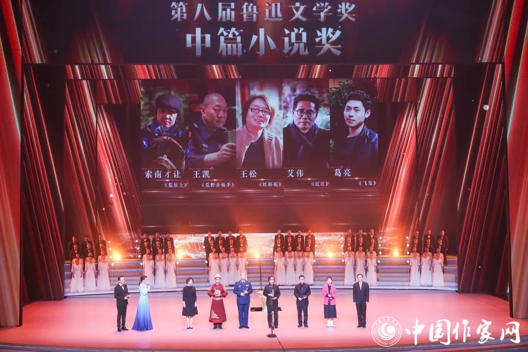 第八屆魯迅文學獎·中篇小說獎得主王凱、王松、索南才讓、艾偉、責編季亞婭代葛亮領獎