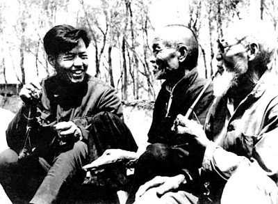 1980年,陳忠實(左一)在家鄉菜園和老農交談。資料圖片
