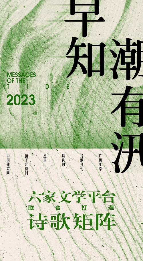 為認(rèn)真貫徹落實(shí)黨的二十大關(guān)于文化的重要精神,積極響應(yīng)中國作協(xié)十屆二次全委會工作報(bào)告中提出的“全力培育中國文學(xué)新力量,建設(shè)規(guī)模宏大的新時(shí)代作家隊(duì)伍”的具體要求,為新人輩出營造浪潮推舟的良好環(huán)境,推動詩歌進(jìn)一步發(fā)展繁榮,《廣西文學(xué)》《詩歌月刊》《詩選刊》《星星》《揚(yáng)子江詩刊》、中國作家網(wǎng)六家文學(xué)平臺聯(lián)合建立跨域融合發(fā)展的詩歌矩陣——“早知潮有汛”懷著“后浪推前浪”的喜悅和責(zé)任助推文學(xué)新潮的到來。
