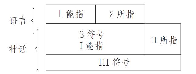 索緒爾的語言學理論告訴我們,能指是聽覺上的形象,所指是概念,概念和形象之間的關系是符號,這已是一種常識了。羅蘭·巴特在索緒爾符號學理論之上建構了一個“現代神話”理論,他認為,神話是一種意指作用的方式,是一種表意符號系統,它由三度空間類型構成,在第一個系統中的符號在第二個系統中變成了一個能指。圖示如下: