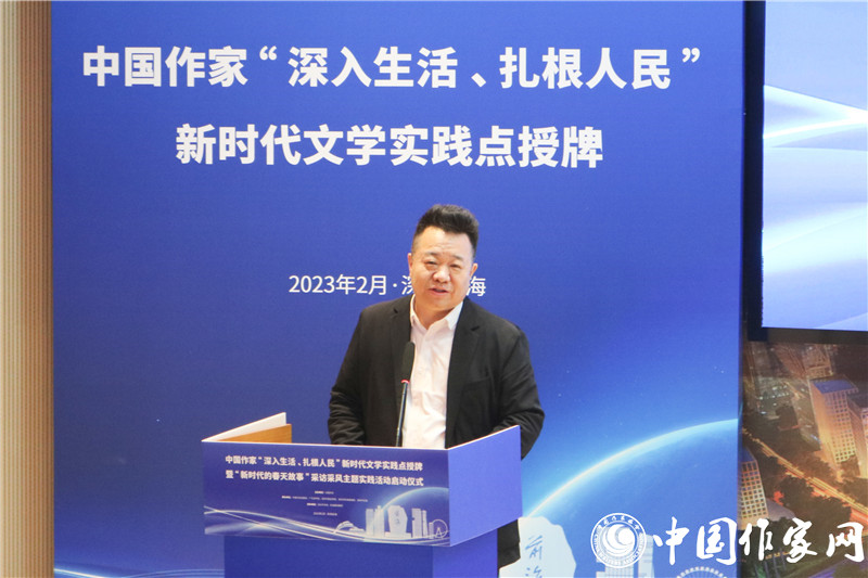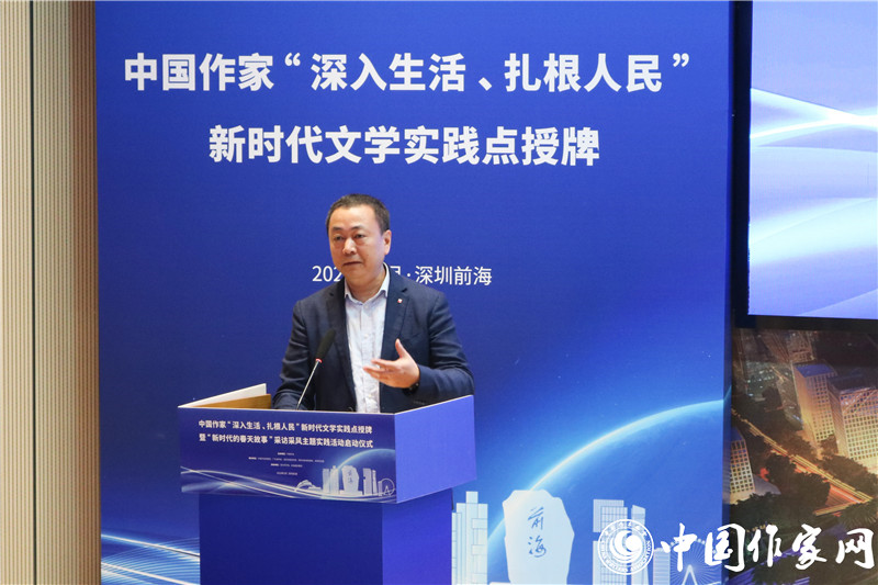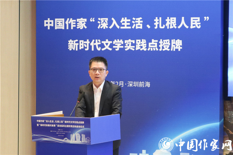 中國作協書記處書記邱華棟在講話中指出,舉行中國作家“深入生活、扎根人民”新時代文學實踐點授牌暨“新時代的春天故事”主題采訪采風活動,團結引領廣大作家堅持“以人民為中心”的創作導向,讓文學以更加主動的姿態為基層服務、為人民服務、在人民的口碑中綻放光芒,推動新時代文學高質量發展,具有特別的意義。前海地理條件優越、文學發展潛力巨大、組織機構健全,具備建設國家級新時代文學實踐點的充分條件。要健全常下基層、常在基層的長效機制,不僅身要沉下去,而且情要融進去,真正吃透生活底蘊、汲取創作營養,讓深入生活真正成為創作的必修課,鼓勵作家走得出、沉得下、蹲得住。希望新時代文學實踐點成為當地作家乃至全國作家的一塊文學根據地,支持作家們在這塊根據地上深入開掘、充分表現,生動講述恢宏大氣的國家故事、感人肺腑的社會故事、勵志進取的個人故事,創作出屬于新時代的新史詩。