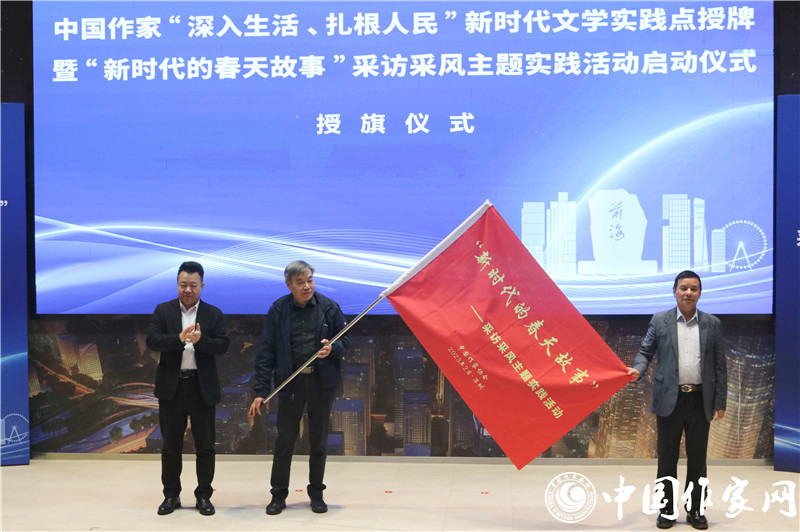 儀式上,彭學明、陳昆、王錦俠分別代表中國作協、廣東省作協和深圳市前海管理局簽訂“新時代文學實踐點”三方合作協議。邱華棟代表中國作協授予中國作家“深入生活、扎根人民”新時代文學實踐點牌匾,陳昆代表廣東省作協授予廣東作家“深入生活、扎根人民”新時代文學實踐點牌匾,王錦俠代表深圳市前海管理局接牌。邱華棟向采訪采風團代表潘凱雄、楊克授旗,正式啟動“新時代的春天故事”采訪采風主題實踐活動。