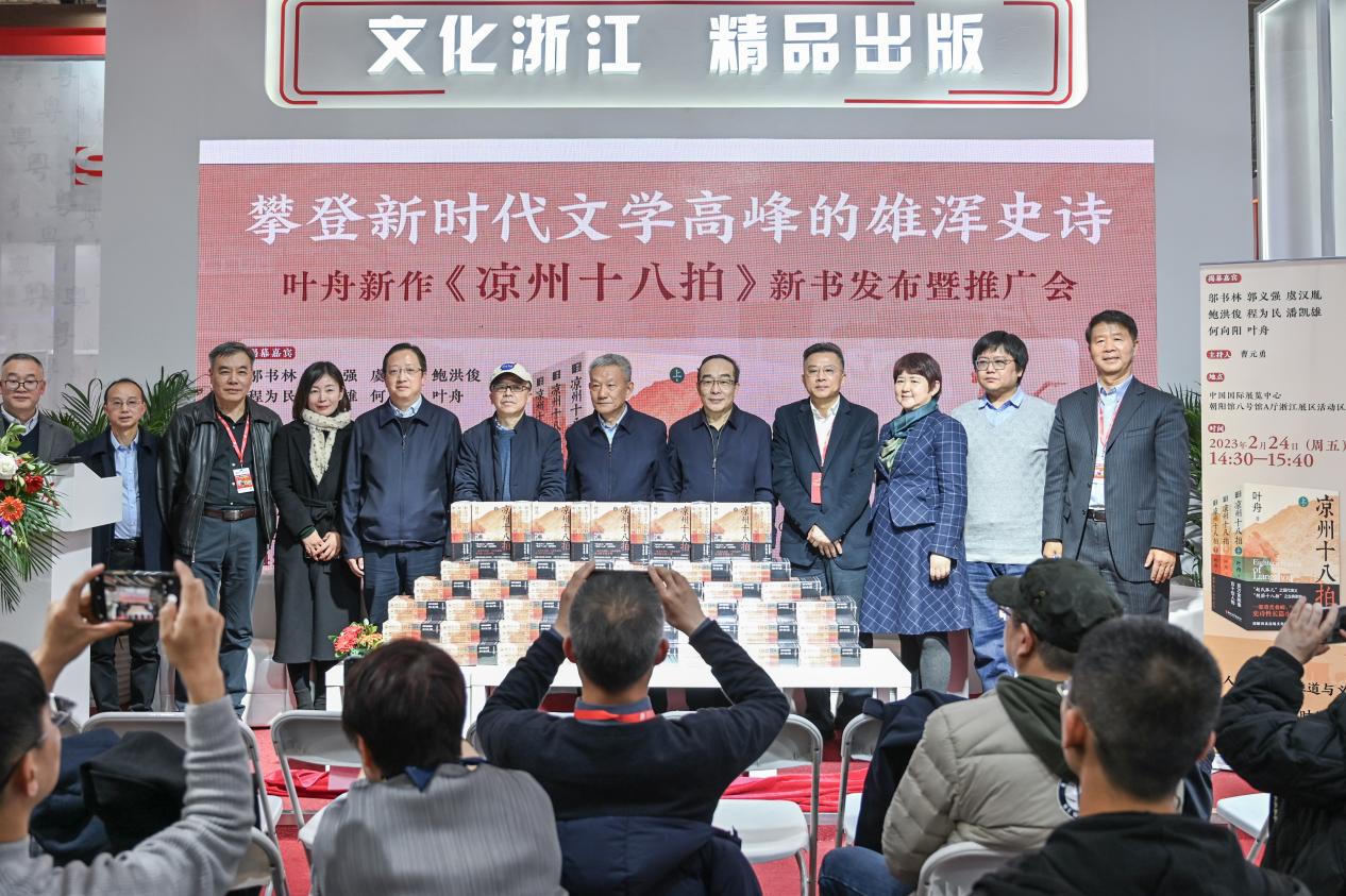 2月24日,由浙江出版聯合集團、浙江文藝出版社主辦的“攀登新時代文學高峰的雄渾史詩——葉舟新作《涼州十八拍》新書發布暨推廣會”在中國國際展覽中心舉辦。中國出版協會理事長鄔書林,中國出版協會副理事長、中國圖書評論學會會長郭義強,浙江省委宣傳部副部長虞漢胤,浙江出版聯合集團董事長、黨委書記鮑洪俊,浙江出版聯合集團董事、總經理、總編輯程為民,中國作家協會小說委員會副主任潘凱雄,中國作家協會創研部主任何向陽,北京大學副教授叢治辰以及作者葉舟出席新書揭幕儀式。