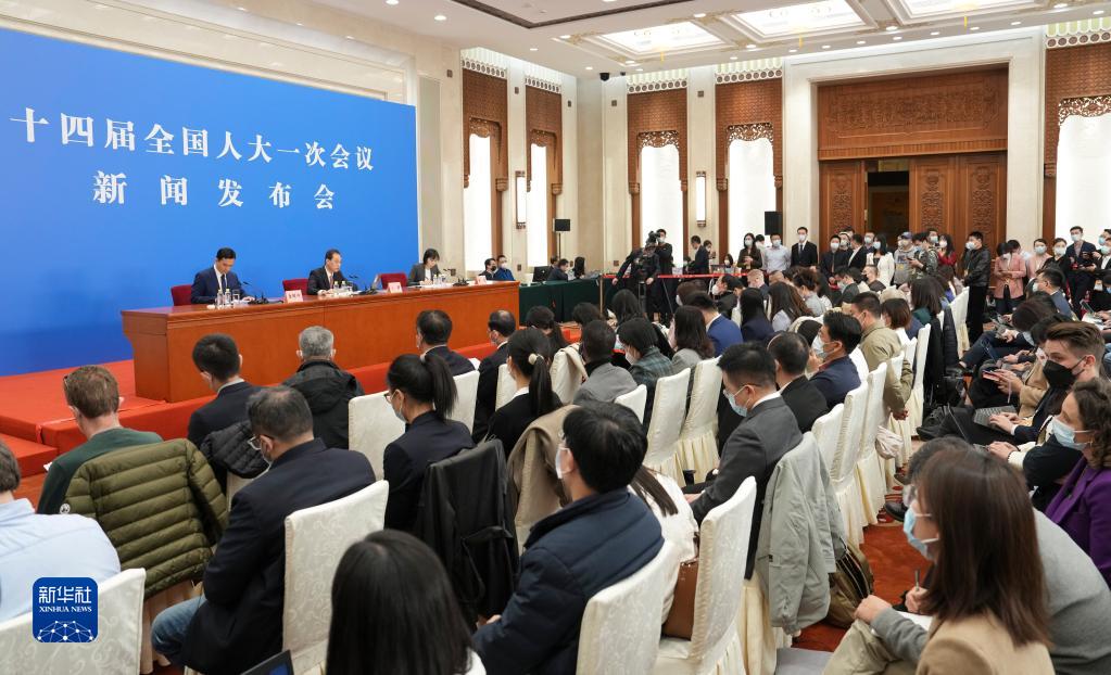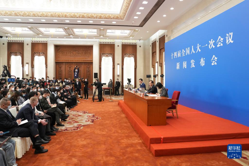 3月4日,十四屆全國人大一次會議在北京人民大會堂舉行新聞發布會。大會發言人王超就大會議程和人大工作相關問題回答中外記者的提問。 新華社記者 邢廣利 攝