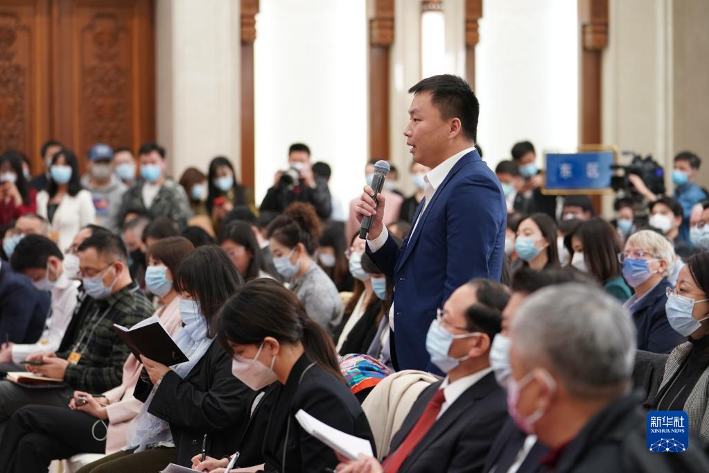 3月4日,十四屆全國人大一次會議在北京人民大會堂舉行新聞發布會。大會發言人王超就大會議程和人大工作相關問題回答中外記者的提問。這是新華社記者在發布會上提問。 新華社記者 邢廣利 攝