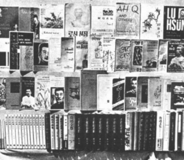 [15] 查1957年人民美術出版社版《魯迅圖片集》與1976年文物出版社版《魯迅》影集都沒有收入這張照片,從畫面來看似乎也是臨時湊集圖書擺拍。