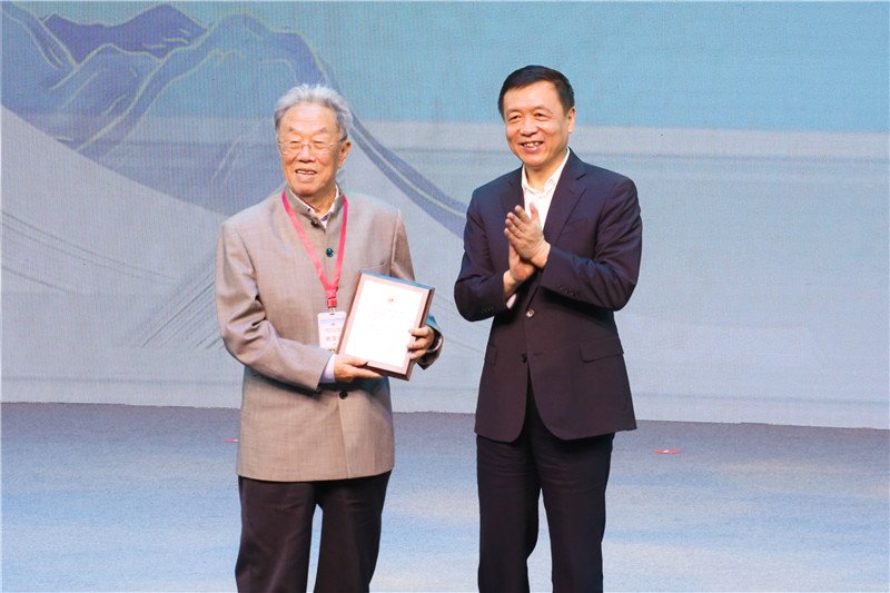 張宏森代表中國(guó)作協(xié)向王蒙頒發(fā)鐫刻著15946天入會(huì)日期的專(zhuān)屬紀(jì)念牌