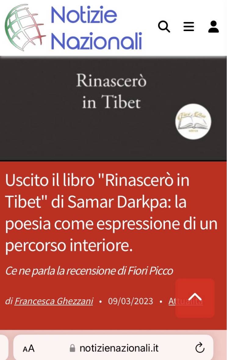 5月12日和18日,意大利 “中國文學(xué)讀者俱樂部” 舉辦第四期讀書活動,推介了詩人沙冒智化的意大利文版詩集《重生西藏》。該活動分為線下、線上兩場,由中國作家協(xié)會支持,意大利中國文學(xué)讀者俱樂部與意大利花達(dá)西亞出版社 (Fiori d’Asia Editrice) 、意大利布雷西亞基亞里市 “燈塔50.0文化協(xié)會“( Associazione Il Faro 50.0 di Chiari ) 和意大利著名文學(xué)沙龍 “吟游詩人之家” ( La Casa del Menestrello) 聯(lián)合舉辦。