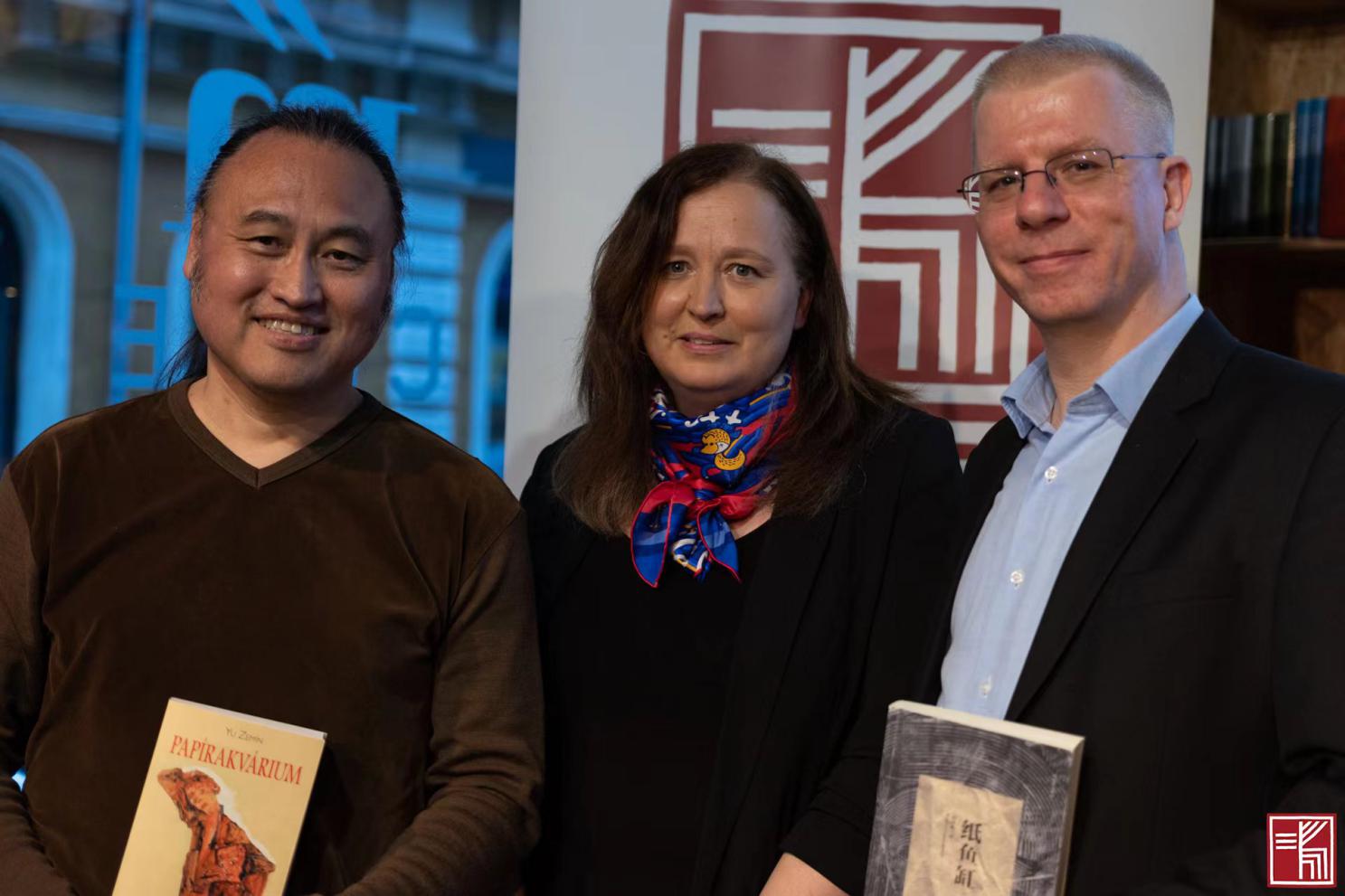 近期,由中國(guó)作家協(xié)會(huì)、布達(dá)佩斯中國(guó)文化中心共同支持的匈牙利“中國(guó)文學(xué)讀者俱樂(lè)部”第五期活動(dòng)在布達(dá)佩斯著名的書(shū)店咖啡館——播種者咖啡館(Magvet? Café)內(nèi)舉辦,推介了余澤民的長(zhǎng)篇小說(shuō)《紙魚(yú)缸》。活動(dòng)被列入“布達(dá)佩斯150年——圖書(shū)之都2023年”(Budapest 150 – K?nyvf?város 2023)系列慶?;顒?dòng)之一,由俱樂(lè)部負(fù)責(zé)人宗博莉·克拉拉(Zombory Klára)女士主持,余澤民與譯者李察德(Mohr Richárd)現(xiàn)場(chǎng)分享,受到匈牙利讀者熱烈歡迎??剖嫣爻霭嫔鐬榛顒?dòng)現(xiàn)場(chǎng)提供了《紙魚(yú)缸》的禮品書(shū)。