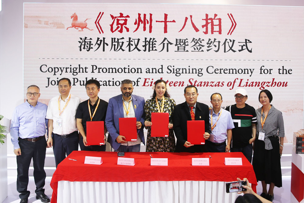 繼今年2月簽訂英文版之后,6月15日,在第二十九屆北京國際圖書博覽會上,葉舟長篇小說《涼州十八拍》再簽西班牙語、羅馬尼亞語、阿拉伯語、泰語、尼泊爾語等五種外文版權(quán)。
