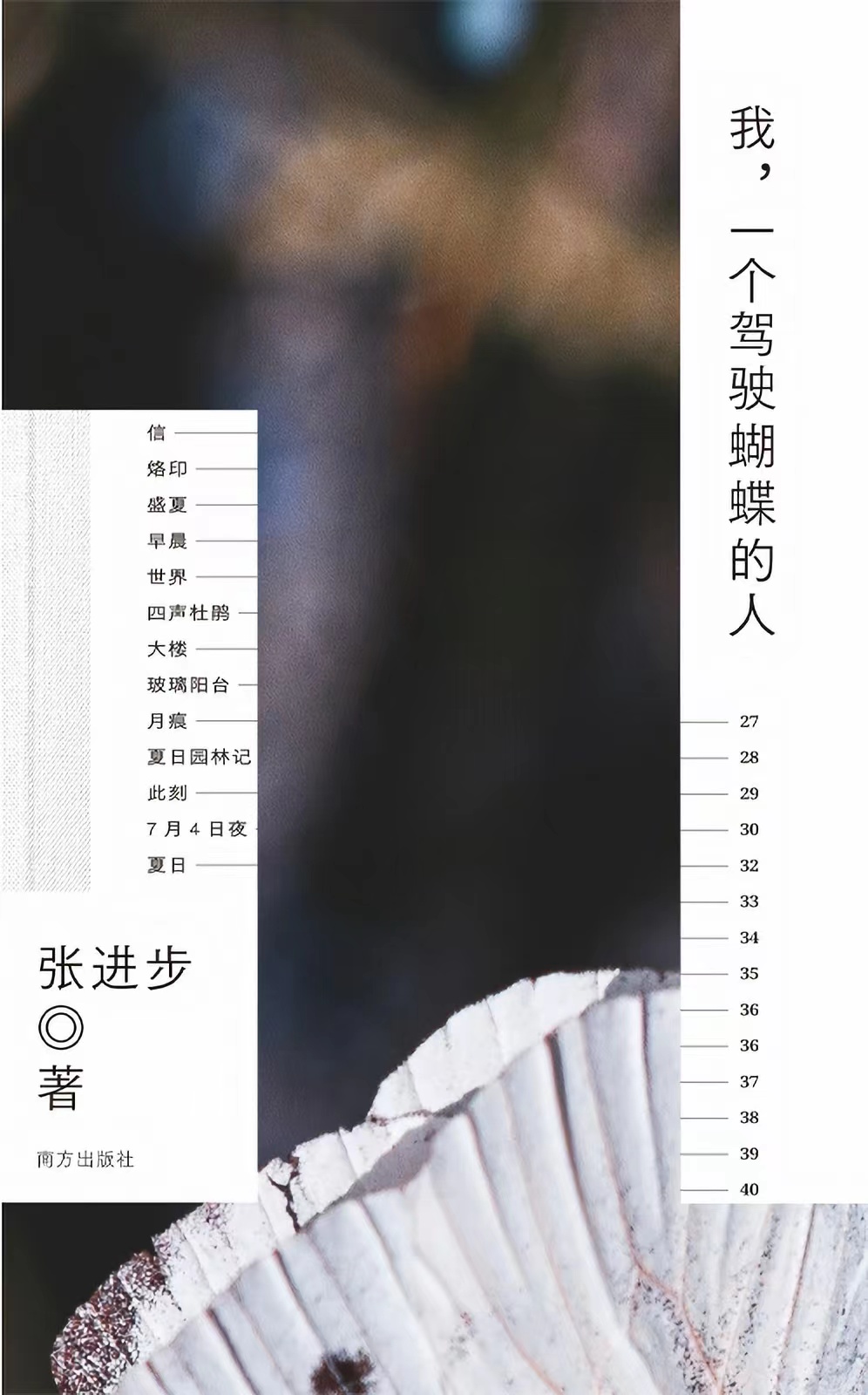 《我,一個駕駛蝴蝶的人》是詩人張進步的詩集,收錄了詩人創作的127首短詩、1篇詩學隨筆、1篇詩人專訪。內容分為“菩薩是一陣細雨”“意象戲劇”“世界和它閃光的部分”“秋夜七弦”四輯。在這本詩集中,作者打破規則的藩籬,讓萬物紛紛涌入筆下,詩歌的內容更加豐富,詩歌的形式也更加自由。其中“秋夜七弦”是一部組詩,每首詩七行,每行都是長句,共20首,每首詩圍繞一兩個核心意象展開,符合詩人對“意象戲劇”的追求。