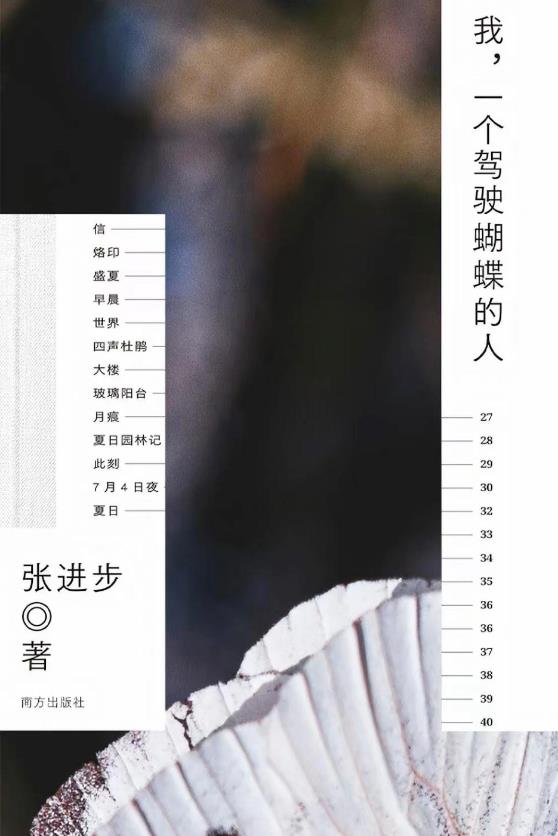 《我,一個駕駛蝴蝶的人》是詩人張進步的詩集,收錄了詩人創作的127首短詩、1篇詩學隨筆、1篇詩人專訪。內容分為“菩薩是一陣細雨”“意象戲劇”“世界和它閃光的部分”“秋夜七弦”四輯。在這本詩集中,作者打破規則的藩籬,讓萬物紛紛涌入筆下,詩歌的內容更加豐富,詩歌的形式也更加自由。其中“秋夜七弦”是一部組詩,每首詩七行,每行都是長句,共20首,每首詩圍繞一兩個核心意象展開,符合詩人對“意象戲劇”的追求。