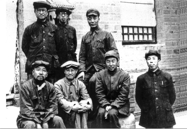 華北聯大在張家口時期的合影。前排左起:于力、何干之、林子明、成仿吾。后排左起:沙可夫、劉介愚、艾青