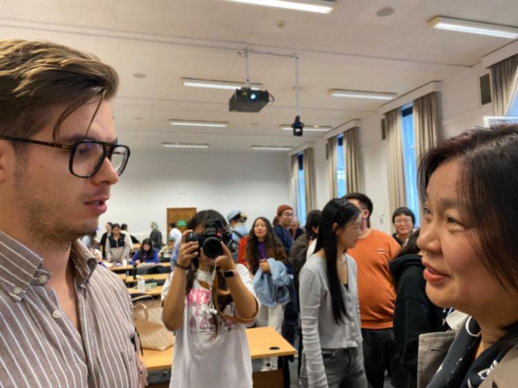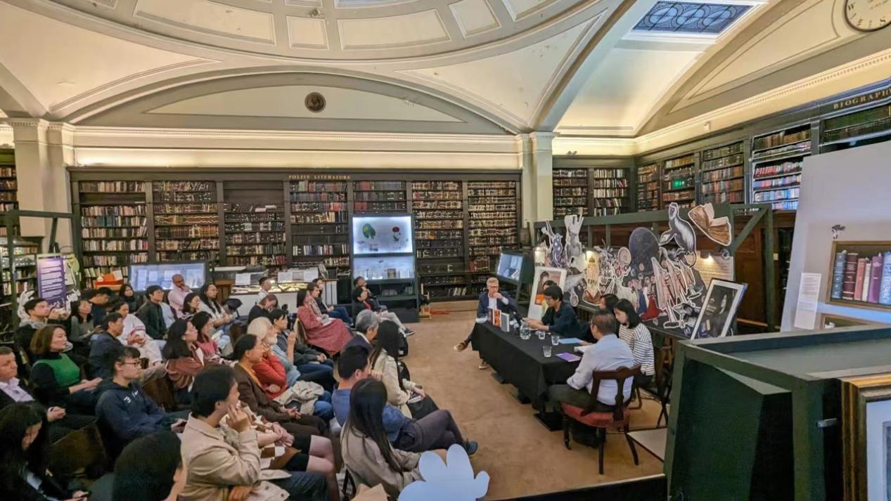 隨后,兩位作家來到書香四溢、充滿古典韻味的曼徹斯特大學(xué)圖書館,與青年學(xué)子們進行了一場充滿文化底蘊的交流。70余位來自曼徹斯特大學(xué)和當(dāng)?shù)匚幕绲淖x者云集一堂,聆聽中國作家暢談創(chuàng)作體會,交流探討作品背后的中國哲學(xué)與文化。