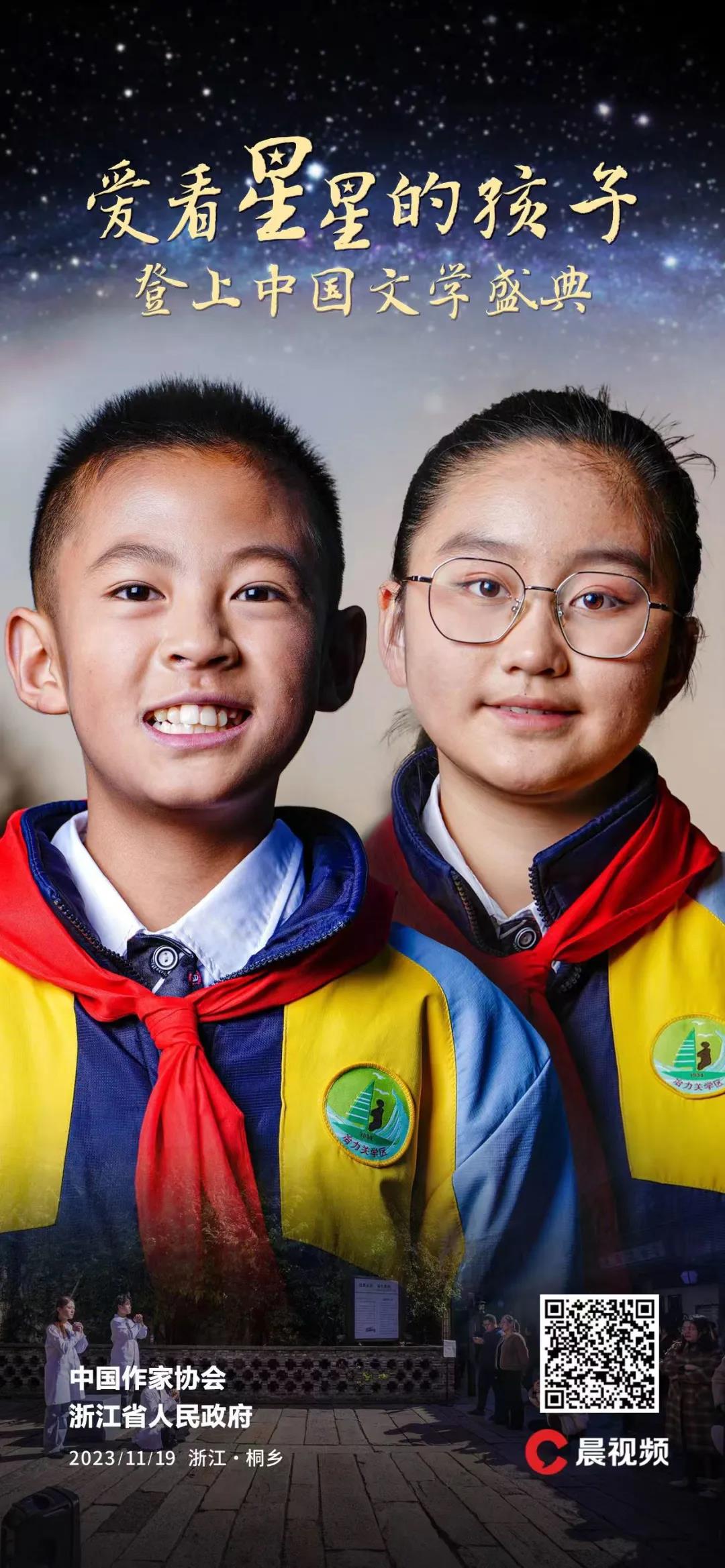 11月19日晚,“2023中國文學盛典·茅盾文學獎之夜”,清澈的童聲蕩漾在浙江省桐鄉市烏鎮。13個來自甘肅省甘南藏族自治州臨潭縣冶力關鎮中心小學的孩子,手托發光的“星星”,跟作家茅盾母校烏鎮植材小學的孩子們合唱《夜空中最亮的星》。他們說,“我們的家鄉很美,那里的星星很漂亮,歡迎來我們的家鄉,寫我們的故事”。那一刻,他們就是舞臺上耀眼的“星星”。