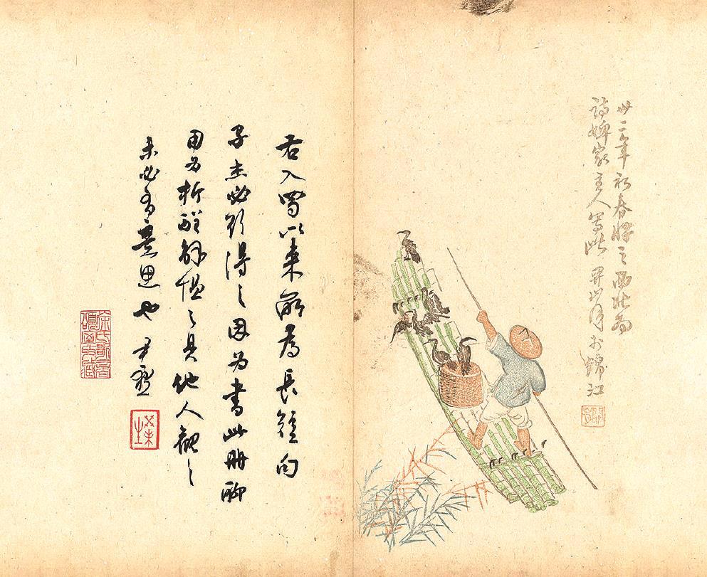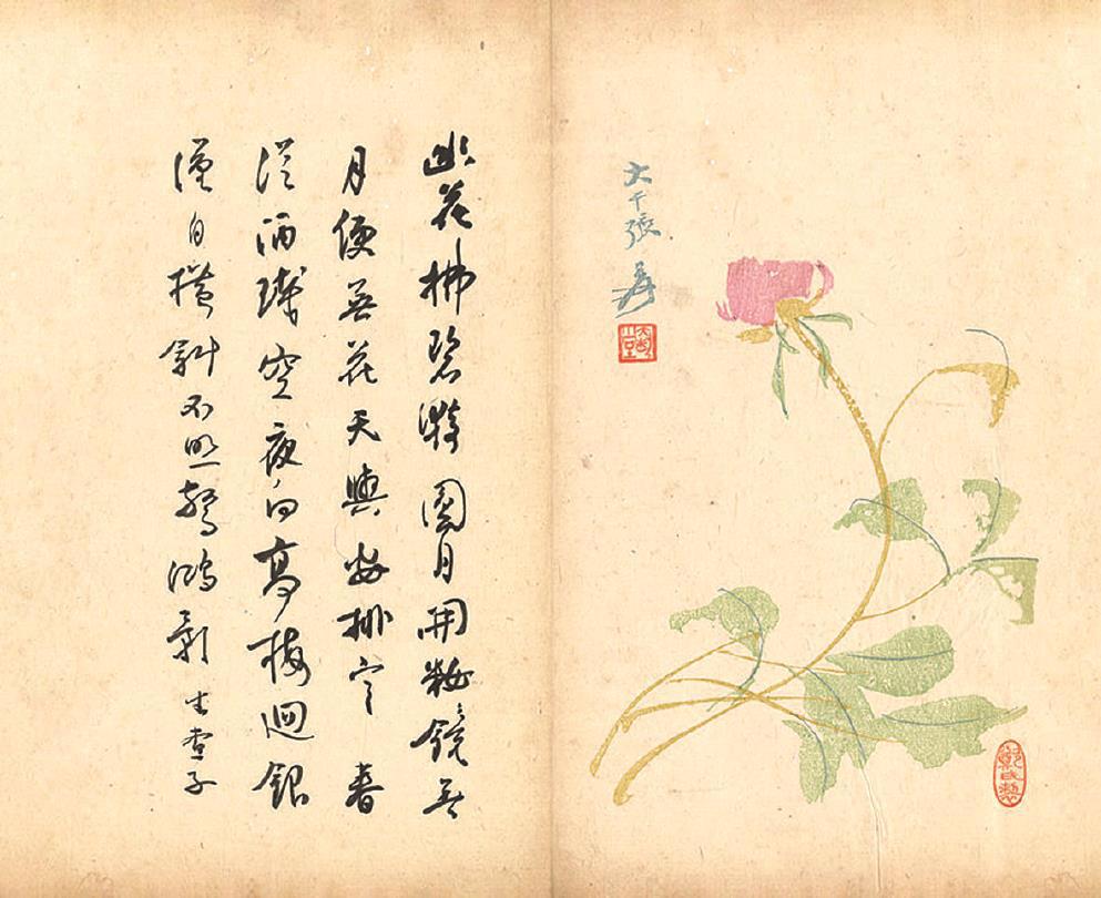 《入蜀詞》所用箋紙為1943年成都詩婢家主人鄭伯英遠(yuǎn)求墜緒、近集時珍所制套色木板水印佳品,乃采摭當(dāng)世蜀中、游蜀或省外諸名家畫事而成者,包括趙熙、余興公、張大千、齊白石、陳師曾、趙望云、黃君璧、關(guān)山月、張采芹等,琳瑯滿目,精美紛呈。首版只印五百部,當(dāng)時即稱難得。所用者有“第二二部”的編號,且編號處及鄭氏箋譜后記署款處均有手鈐的鄭氏名印,余往年見謝無量以同一箋譜所書詩稿一冊則俱無之。今日觀之,彌覺珍貴了。
