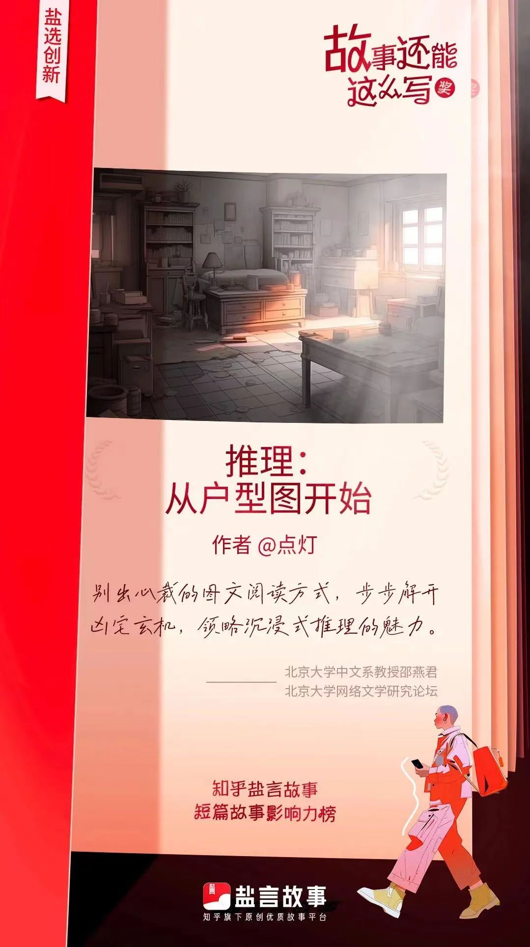 點燈,1999年生。知乎鹽言故事簽約作家。擅長短篇懸疑小說創作,代表作《最后的真相》《活在真空里》《兄友弟恭:沉沒的人生》《逼上梁山》《黑樓往事》(“黑樓系列”)《推理:從戶型圖開始》《私了》等,在知乎獲得上億閱讀量,三部作品位列知乎懸疑榜單前十。“黑樓系列”小說出版已簽約,《活在真空里》《兄友弟恭》《逼上梁山》《黑樓往事》影視改編權已售出。