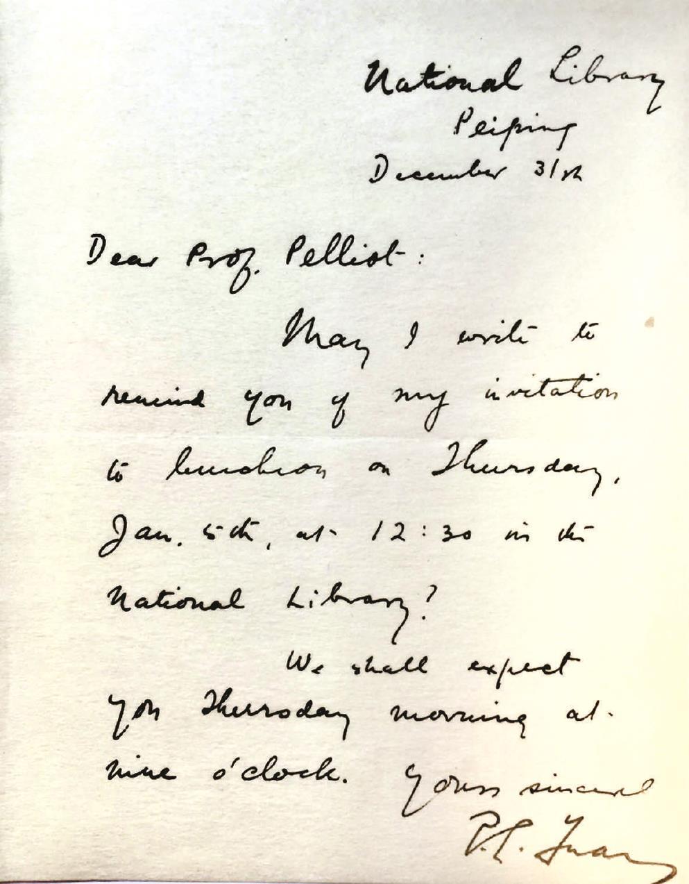 作為圖書館的負責人,袁同禮特別關注充實館藏,為此與國際學人多方交流,而伯希和正是與他互動頗多的人士之一。抗戰期間,先生和伯希和的通信較少,存留的信中可見先生控訴日本帝國主義對中國圖書事業的摧殘,呼吁法國對中國圖書館的支持。