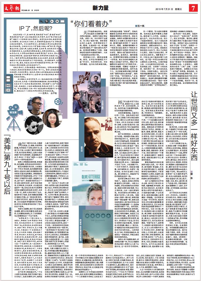 2019年7月,新中國成立70周年之際,《文藝報》也將迎來70歲生日。這個月的最后一天——7月31日,“新力量”青年專刊“橫空出世”,之所以說“橫空出世”,是因為第二天收到了太多反饋,很多讀者覺得這個專刊有些與眾不同。始料未及,卻也在意料之中。