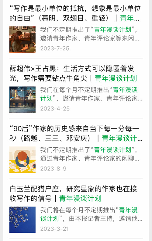 部分“青年作家漫談計劃”話題